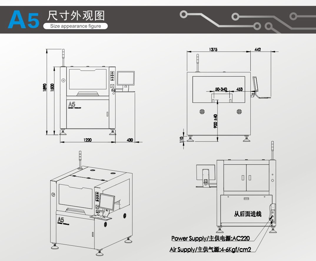 A5系列是一款高精度全自動錫膏印刷機(jī)(High?PrecisionAuto?Paste?Printer)。在表面組裝工藝生產(chǎn)(SMT)中,用于高精度的鋼網(wǎng)印刷或漏版印刷的專用生產(chǎn)設(shè)備。
